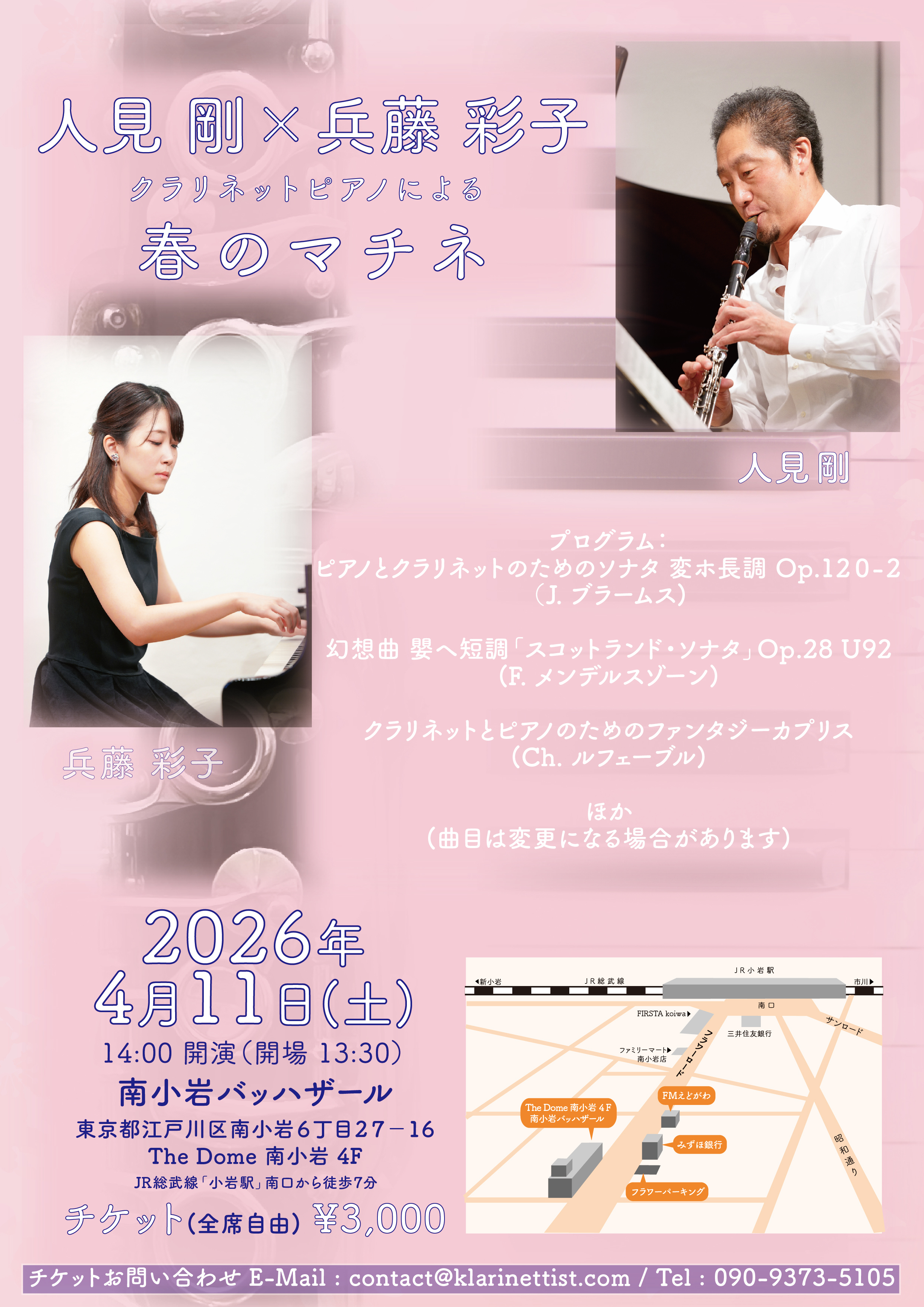 人見 剛x兵藤 彩子 クラリネットとピアノによる春のマチネ