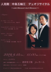 人見剛・中島五輪江デュオリサイタル 〜nicht Klarinette? doch Klarinette!〜 2009年09月13日 15:00開演 場所:遊音堂